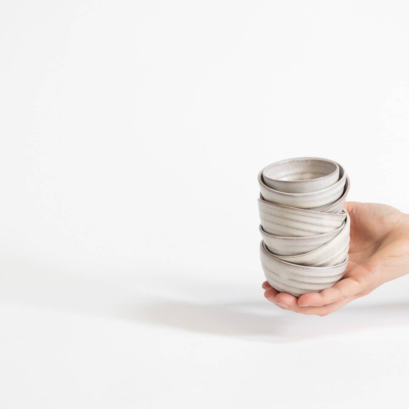 Two hand thrown little bowls in matte cream glaze. Their small size is fun and versatile... Each one is unique! Made by hand in the US.