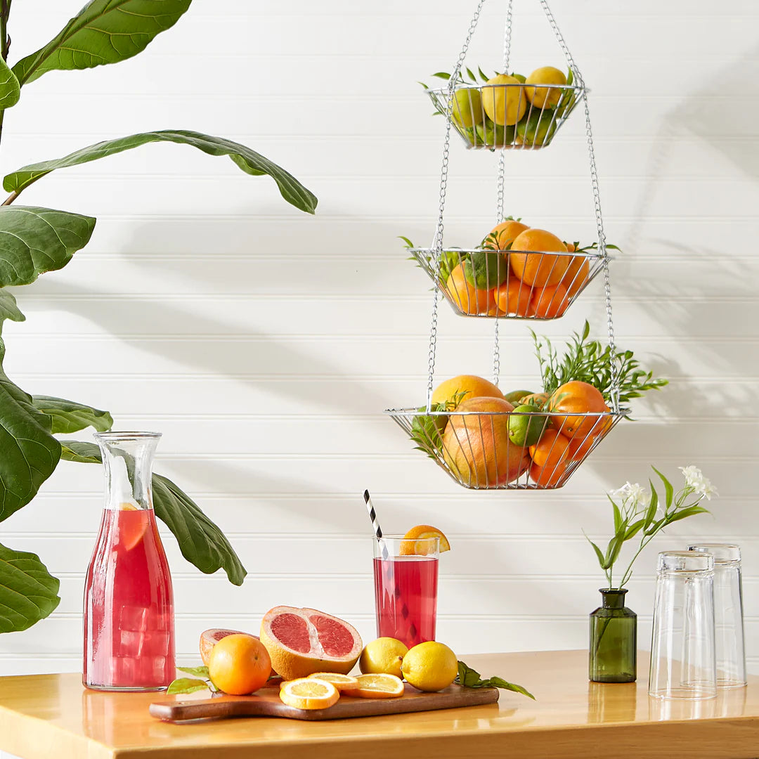 Basket holds up to 10 pounds and measures 8 inches, 10 inches and 12 inches in diameter with a 30-inch overall length when hung.